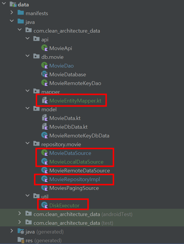 생성자로 전달받는 Local Data Source, MovieDao 등을 사용하기 위해서 의존성 주입을 해주어야 합니다. 본 시리즈는 클린 아키텍처 시리즈의 프로젝트에서 이어서 하는 중이기 때문에 Hilt 모듈을 추가하겠습니다.